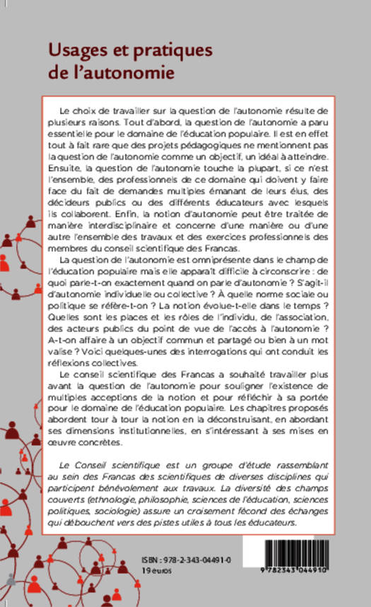 La question de l'autonomie est omniprésente dans le champ de l'éducation populaire, mais elle est difficile à circonscrire : de quoi parle-t-on exactement ? S'agit-il d'autonomie individuelle ou collective ? A quelle norme sociale ou politique se réfère-t-on ? La notion évolue-t-elle avec le temps ? Le conseil scientifique des Francas a souhaité travailler cette question pour souligner la multiplicité de ses acceptions, pour réfléchir à sa portée et s'intéresser à des mises en oeuvre concrètes.