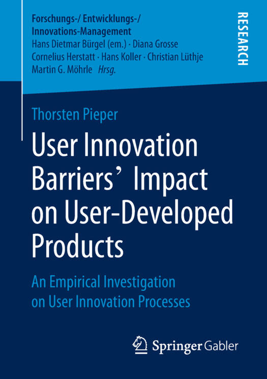 Thorsten Pieper explores the impact of innovation barriers along the user innovation process, in particular whether technological, social, legal and ownership barriers change the properties of user-developed products. This study roots from the "open innovation" research field and reveals insights from innovating users in "collaborative workspaces". The results prove a hierarchical allocation of innovation barriers regarding their influence on the end-product and moderating influences of user innovators' personal characteristics. The author discusses these insights and provides practical recommendations for more efficient promotion of user innovations and successful integration in corporate "co-creation" projects.