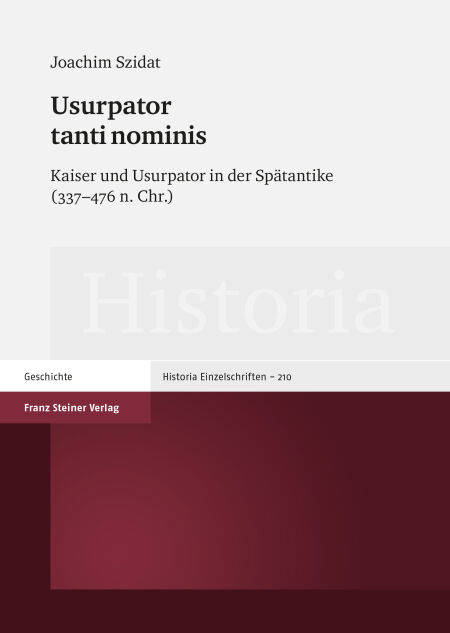 Die römische Kaiserzeit kannte kein institutionalisiertes Verfahren, das die Übergabe der Macht an der Spitze des Reiches regelte. Ein Wechsel der Herrschaft führte daher häufig zu Krisensituationen. Joachim Szidat untersucht Kaisererhebungen und Usurpationen in der Spätantike nach 337 bis zum Ende des Kaisertums im Westen 476. Außerdem bezieht er die Zeit der Tetrarchie und die frühbyzantische Epoche bis in die Mitte des 6. Jahrhunderts in seine Darstellung ein.