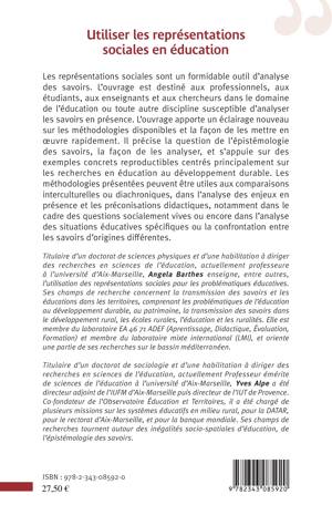 Les représentations sociales sont un formidable outil d’analyse des savoirs. L’ouvrage est destiné aux professionnels, aux étudiants, aux enseignants et aux chercheurs dans le domaine de l’éducation ou toute autre discipline susceptible d’analyser les savoirs en présence. Il apporte un éclairage nouveau sur les méthodologies disponibles et la façon de les mettre en oeuvre rapidement. Il précise la question de l’épistémologie des savoirs, la façon de les analyser, et s’appuie sur des exemples concrets reproductibles centrés principalement sur les recherches en éducation au développement durable.