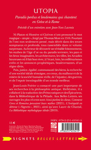 Ni Platon ni Homère ni Cicéron n’ont prononcé le mot magique « utopie », forgé par Thomas More en 1516. Pourtant ils l’ont non seulement pensé, mais décrit dans des textes somptueux et profonds, tous rassemblés dans ce volume surprenant. Au lecteur de découvrir un véritable foisonnement, les mythes de l’âge d’or ou du paradis terrestre, les pays et les lieux imaginaires, les architectures, les villes, les Arcadies heureuses où il fait bon vivre, à l’écart, loin, les millénarismes enfin et les annonces prophétiques, bouleversantes, d’un règne divin.