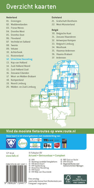 Geniet van de aaneengeschakelde natuur van De Leusderheide, de bossen van Zeist en Austerlitz, de landgoederen Bornia, Noordhout en Den Treek-Henschoten. Stippel je fietstocht uit en beleef de Utrechtse Heuvelrug op de fiets! Via het routenetwerk en de welbekende knooppunten kom je alle pittoreske zaken tegen. De fietskaart is voorzien knooppunten, het knooppuntennetwerk, LF-routes, plaats- en straatnamenregister, toeristische VVV-informatie, horecagelegenheden en een overzicht van alle VVV-kantoren in de regio.