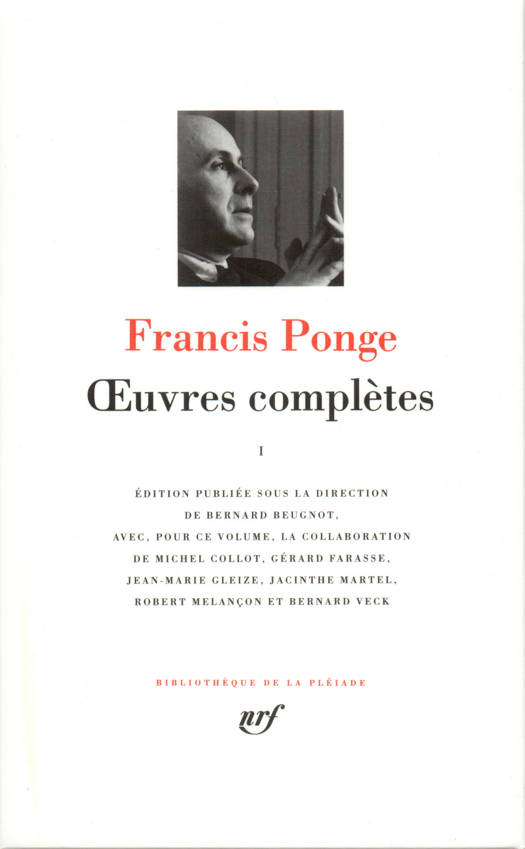 Ponge, ou la rage, dans ses proêmes, d'exprimer la chose, qui nous prend à partie pour "atteindre enfin par la parole au point dialectique où [la] situent sa forme et son milieu, sa condition muette et l'exercice de sa profession juste". Ponge, ou l'homme en chemin vers l'homme dans ce dire où l'objet montre "ce qu'il a de brut, de différent" au terme de l'investigation aimante du regard poétique, où se trouve conjuré le sort de l'"opiniâtrement clos". Ponge, c'est aussi, en marge des écoles, mais au coeur de l'histoire littéraire sans cesse revisitée, la quête du langage adéquat, quête incessante que souligne la genèse des textes. Les mots, le style doivent rendre compte du dessein humaniste du poète : être le héraut - plus que le chantre - de ce qui l'entoure et qu'artisan il détoure pour l'accoucher de son secret/projet - "une exacte compréhension du monde sans doute est à ce prix". "L'art de vivre d'abord y devait trouver son compte : il nous fallait relever ce défi." Le texte, jusqu'en sa matérialité, se veut pièce à conviction dans le réseau mouvant des recueils toujours recomposés, avec, en ligne de fuite, le rêve mallarméen du Livre.