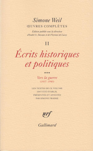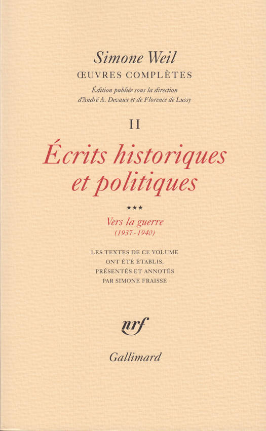 En 1937, Simone Weil lutte de toutes ses forces pour que les Européens "ne recommencent pas la guerre de Troie". Pourtant, la guerre est là en 1940 et, devant l'irréparable, elle se fonde sur l'Iliade pour analyser le mécanisme de la force meurtrière. Entre ces deux dates, une série d'articles, parus dans diverses revues, nous permet de suivre l'évolution de la philosophe qui la mène du pacifisme presque inconditionnel à l'acceptation d'un inévitable conflit. Et celle qui, en 1937, préfère la défaite à la guerre, reconnaît en 1940 que la France a le droit de combattre pour sa propre existence, justifiant ainsi l'accusation qu'elle se portera à elle-même de négligence criminelle à l'égard de sa patrie pour son soutien des milieux pacifistes d'avant 1939. Une telle évolution, si déchirante pour Simone Weil, s'accompagne naturellement de la profonde méditation qu'elle poursuit sur les problèmes coloniaux : ceux-ci l'obligent à contester, plus nettement encore en ce temps de guerre, le droit moral de la France à se réclamer des grands principes. L'affligeante constatation des bouleversements en cours pousse aussi Simone Weil à la recherche des origines de l'hitlérisme qu'elle rattache à l'Empire romain. La lucidité et le discernement de Simone Weil, penseur politique, sont tels que beaucoup des textes ici rassemblés frappent par leur actualité. Simone Fraisse en sa préface s'attache à préciser leur genèse et se plaît à souligner que, si l'on ne peut toujours prendre "à la lettre" les conclusions de Simone Weil, "on peut au moins prendre au sérieux l'intention qui l'a guidée : une attitude de soupçon à l'égard de l'histoire officielle et des idées reçues, une quête de la vérité cachée sous les images d'Épinal transmises par la tradition scolaire, et finalement une leçon d'histoire. Une leçon d'humanité aussi."