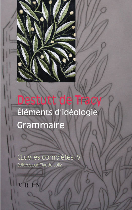 English summary: Antoine Louis Claude Destutt de Tracy examined grammar, not as the classification of different types of words, but as thought in action, the capacity to judge and propose. In this work, the decomposition/recomposition of the elements of proposition and the analysis of their functions was at the basis of his semiology, allowing him to demonstrate how language could become an instrument in the progress of thought. French description: Toutes nos connaissances sont des idees; ces idees ne nous apparaissent jamais que revetues de signes. Quant aux regles qui regissent le langage, elles sont directement commandees par les operations de notre entendement. Destutt de Tracy est ainsi conduit a faire de la Grammaire (1803) la suite immediate et le complement necessaire de l'Ideologie proprement dite (1801). Cette grammaire ne saurait consister dans la classification des differents types de mots, ni dans les regles de leur agencement: elle doit au contraire s'enraciner dans la pensee en acte, autrement dit dans l'exercice de la faculte de juger et dans la proposition, qui n'est pas autre chose que l'enonce d'un jugement. La decomposition/recomposition des elements de la proposition et l'analyse de leurs fonctions constituent alors la pierre angulaire de la science des signes et permet a Destutt de Tracy de montrer a quelles conditions le langage peut devenir l'instrument du progres des lumieres et, pour finir, de l'emancipation et du bonheur des peuples.
