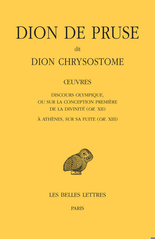 Nous sommes en 97 ap. J.-C. C'est depuis le temple meme de Zeus que Dion prononce son discours devant un public nombreux, rassemble a Olympie lors d'une des editions des celebres jeux. A mi-chemin entre l'hymne en prose et la diatribe, le Discours olympiquede Dion repose sur une defense philosophique. Les performances de l'esprit sont elevees au meme rang que celles du corps. Le philosophe vagabond entreprend ainsi de departager l'artiste Phidias du poete Homere, couronnant, contre toute attente, Phidias. Dans le discours intitule A Athenes, sur sa fuite, Dion revient sur ses annees d'errance, loin de Rome et de sa chere patrie. Il en propose une relecture sur le mode philosophique dans un texte dont le faciesparticulier a suscite et suscite encore la discussion.