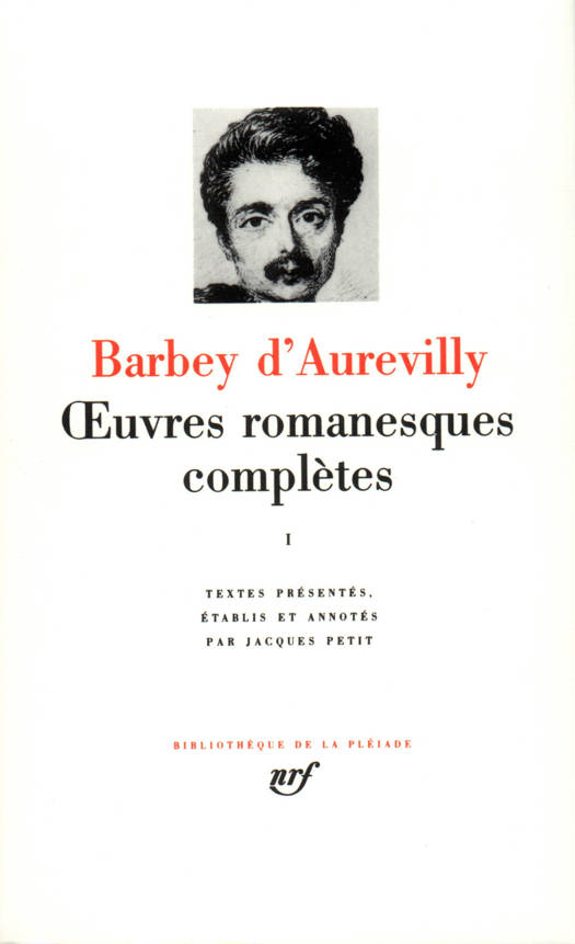 "L'Œuvre romanesque de Barbey d'Aurevilly paraît dans la Bibliothèque de la Pléiade. Consécration méritée d'un écrivain que ses contemporains ont méconnu et que la postérité n'a pas toujours mieux traité. Toute une légende l'entoure : critique brutal, romancier régionaliste, dandy extravagant et un peu ridicule... Masques et défenses, auxquels on s'est mépris. Quelques-uns seulement devinaient le tragique intérieur, tragique d'une solitude infrangible, qui est l'un des thèmes les plus constants de l'oeuvre, en même temps que sa justification profonde. Nul autre mode de publication ne pouvait mieux convenir à cette oeuvre restreinte dans ses dimensions, et que toute lecture partielle affaiblit ou défigure. Variés, les décors et les fictions ne cachent point au lecteur le retour des thèmes, la permanence d'une atmosphère, qui en font l'unité et l'intérêt. On connaît à ce propos la page célèbre de Proust. Sans doute est-ce celui-ci d'ailleurs qui a le mieux vu cette oeuvre romanesque, y découvrant certains de ses propres mouvements : le goût du secret, l'obsession du passé, l'anxiété... Thèmes tout proches de nous ! ce qui explique cette curiosité qui depuis quelques années revient à Barbey d'Aurevilly. Auprès des grands romanciers du XIXᵉ siècle, il fallait lui faire une place ; il est un de ceux, dit Proust encore, qui ont à nous révéler la "qualité inconnue d'un monde unique"." Jacques Petit.