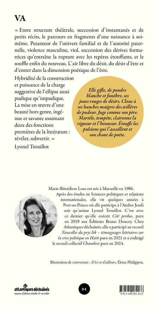 « Entre structure théâtrale, succession d’instantanés et de petits récits le parcours en fragments d’une naissance à soi-même. Pesanteur de l’univers familial et de l’autorité paternelle, violence masculine, viol, succession des dérives formatrices qu’entraîne la rupture avec les repères étouffants, et le souffle enfin du nouveau. L’air libre du désir, du désir d’être et d’entrer dans la dimension poétique de l’être. Pour soi. Par soi. Hybridité de la construction et puissance de la charge suggestive de l’ellipse aussi pudique qu’impudique. La mise en oeuvre d’une beauté hors genre, ingénue et savante assumant deux des fonctions premières de la littérature : révéler, subvertir. » Lyonel Trouillot