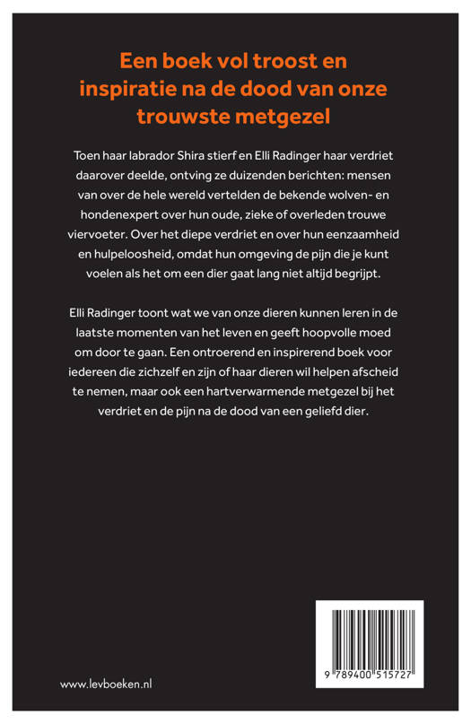 Toen haar labrador Shira stierf en Elli Radinger haar verdriet daarover deelde, ontving ze duizenden berichten: mensen van over de hele wereld vertelden de bekende wolven- en hondenexpert over hun oude, zieke of overleden trouwe viervoeter. Over het diepe verdriet en over hun eenzaamheid en hulpeloosheid, omdat hun omgeving de pijn die je kunt voelen als het om een dier gaat lang niet altijd begrijpt.