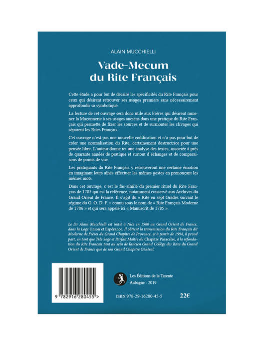Cette étude a pour but de décrire les spécificités du Rite Français pour ceux qui désirent retrouver ses usages premiers sans nécessairement approfondir sa symbolique. La lecture de cet ouvrage sera donc utile aux Frères qui désirent ramener la Maçonnerie à ses usages anciens dans une pratique du Rite Français qui permette de fixer les sources et de surmonter les clivages qui séparent les Rites Français. Cet ouvrage n’est pas une nouvelle codification et n’a pas pour but de créer une normalisation du Rite, certainement destructrice pour une pensée libre. L’auteur donne ici une analyse des textes, associée à près de quarante années de pratique et surtout d’échanges et de comparai-sons de points de vue. Les pratiquants du Rite Français y retrouveront une certaine émotion en imaginant leurs aînés effectuer les mêmes gestes en prononçant les mêmes mots. Dans cet ouvrage, c’est le fac-similé du premier rituel du Rite Français de 1785 qui est la référence, notamment conservé aux Archives du Grand Orient de France. Il s’agit du « Rite en sept Grades suivant le régime du G. O. D. F. » connu sous le nom de « Rite Français Moderne de 1786 » et qui sera appelé ici « Manuscrit de 1785 ».