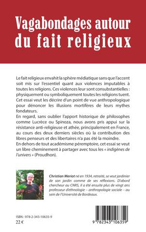 Le fait religieux envahit la sphère médiatique sans que l'accent soit mis sur l'essentiel quant aux violences imputables à toutes les religions. Cet essai veut les décrire d'un point de vue anthropologique pour dénoncer les illusions mortifères de leurs mythes fondateurs. S'appuyant sur les travaux de Lucrèce, de Spinoza, la résistance anti-religieuse et athée, principalement en France, cet essai se veut un libre cheminement à partager avec tous les "indigènes de l'univers" (Proudhon).
