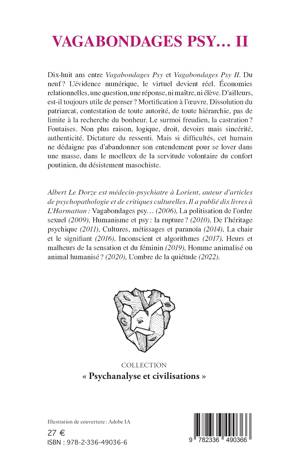 Dix-huit ans entre Vagabondages Psy et Vagabondages Psy II. Du neuf ? L’évidence numérique, le virtuel devient réel. Économies relationnelles, une question, une réponse, ni maître, ni élève. D’ailleurs, est-il toujours utile de penser ? Mortification à l’œuvre. Dissolution du patriarcat, contestation de toute autorité, de toute hiérarchie, pas de limite à la recherche du bonheur. Le surmoi freudien, la castration ? Foutaises. Non plus raison, logique, droit, devoirs mais sincérité, authenticité. Dictature du ressenti. Mais si difficultés, cet humain ne dédaigne pas d’abandonner son entendement pour se lover dans une masse, dans le moelleux de la servitude volontaire du confort poutinien, du désistement masochiste.