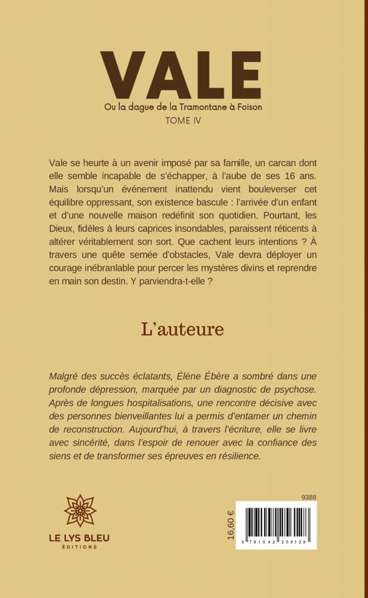 Vale se heurte à un avenir imposé par sa famille, un carcan dont elle semble incapable de s'échapper, à l'aube de ses 16 ans. Mais lorsqu'un événement inattendu vient bouleverser cet équilibre oppressant, son existence bascule : l'arrivée d'un enfant et d'une nouvelle maison redéfinit son quotidien. Pourtant, les Dieux, fidèles à leurs caprices insondables, paraissent réticents à altérer véritablement son sort. Que cachent leurs intentions ? À travers une quête semée d'obstacles, Vale devra déployer un courage inébranlable pour percer les mystères divins et reprendre en main son destin. Y parviendra-t-elle ?
