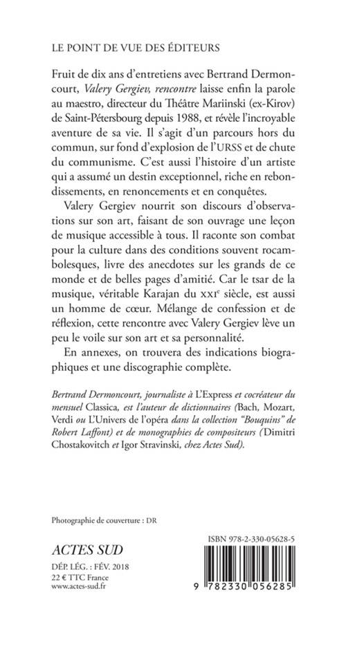 Fruit de dix ans d'entretiens avec Bertrand Dermoncourt, cet ouvrage laisse la parole à Valery Gergiev, chef d'orchestre le plus demandé au monde et directeur du Théâtre Mariinsky depuis près de trente ans. Actuellement, Valery Gergiev entame, à la tête de l'Orchestre du Mariinsky, une intégrale de« L'Anneau du Nibelung» de Richard Wagner sur deux saisons, entouré de chanteurs de sa troupe permanente et de quelques invités de choix. Une distribution incandescente pour cette extraordinaire fresque musicale. Les concerts seront accueillis à la Philharmonie de Paris en mars 2018 et autour de ce programme se déploie toute une série de conférences autour de l'oeuvre de Wagner.
