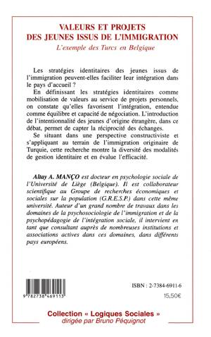 Les stratégies identitaires des jeunes issus de l'immigration peuvent-elles faciliter leur intégration dans le pays d'accueil ? En définissant les stratégies identitaires comme mobilisation de valeurs au service de projets personnels, on constate qu'elle favorisent l'intégration, entendue comme équilibre et capacité de négociation. L'introduction de l'intentionnalité des jeunes d'origine étrangère dans ce débat, permet de capter la réciprocité des échanges. Se situant dans une perspective constructiviste et s'appliquant au terrain de l'immigration originaire de Turquie, cette recherche montre la diversité des modalités de gestion identitaire et en évalue l'efficacité.