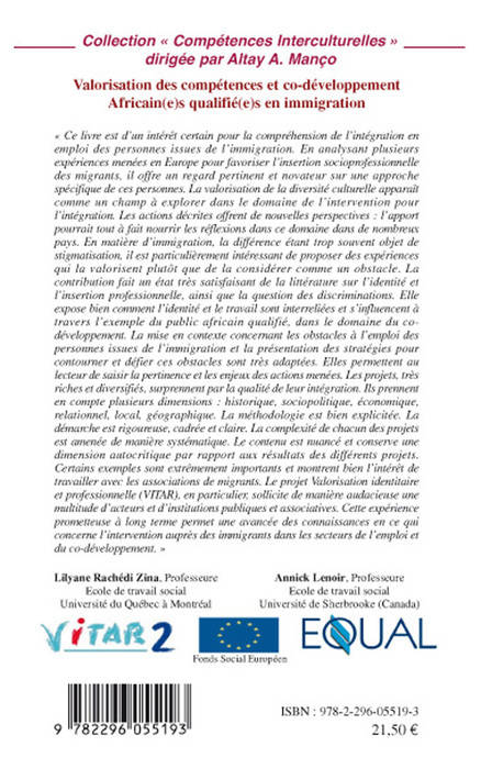 Ce livre est d'un grand intérêt pour la compréhension de l'intégration en emploi des personnes issues de l'immigration. En analysant plusieurs expériences menées en Europe pour favoriser l'insertion socioprofessionnelle des migrants, il offre un regard pertinent et novateur sur une approche spécifique de ces personnes. Le projet Valorisation identitaire et professionnelle (VITAR) sollicite de manière audacieuse une multitude d'acteurs et d'institutions publiques et associatives.
