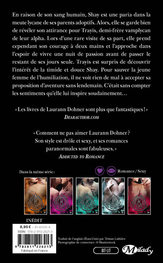 En raison de son sang humain, Shay est une paria dans la meute lycanne de ses parents adoptifs. Alors, elle se garde bien de révéler son attirance pour Trayis, demi-frère vamplycan de leur alpha. Lors d'une rare visite de sa part, elle prend cependant son courage à deux mains et l'approche dans l'espoir de vivre une nuit de passion avant de passer le restant de ses jours seule. Trayis est surpris de découvrir l'intérêt de la timide et douce Shay. Pour sauver la jeune femme de l'humiliation, il ne voit rien de mal à accepter sa proposition d'aventure sans lendemain. C'était sans compter les sentiments qu'elle lui inspire soudainement...