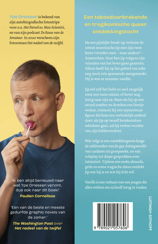 Wat volgt is een ontdekkingsreis langs de rafelranden van de gay datingwereld: van cardates tot groepsseks, en van roleplay tot diepe gesprekken over intimiteit. Tijdens zijn reeks absurde, geile en soms tragische dates, ontdekt Jip wie hij is en wat hij écht wil. Vanilla is een verhaal over een jongen die alles verliest om zichzelf terug te vinden.