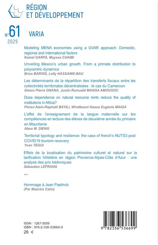 Les déterminants de la répartition des transferts fiscaux entre les collectivités territoriales décentralisées: le cas du Cameroun