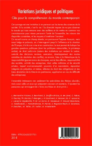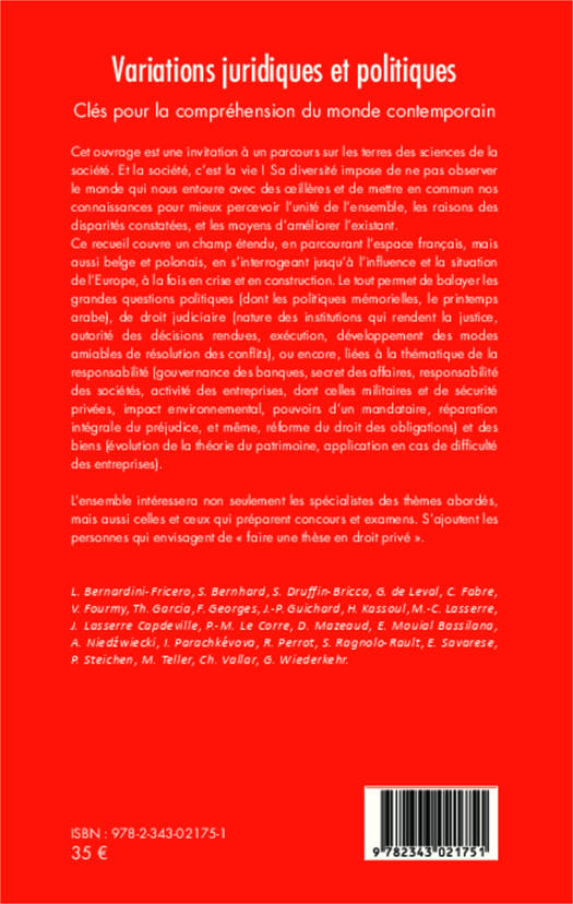 Cet ouvrage est une invitation à un parcours sur les terres des sciences de la société. La diversité de celle-ci impose de ne pas observer le monde avec des illères. Ce livre couvre un champ étendu, en parcourant l'espace français, belge et polonais, en s'interrogeant jusqu'à l'influence et la situation de l'Europe, à la fois en crise et en construction. Le tout permet de balayer les grandes questions politiques, de droit judiciaire, ou encore liées à la thématique de la responsabilité et des biens.