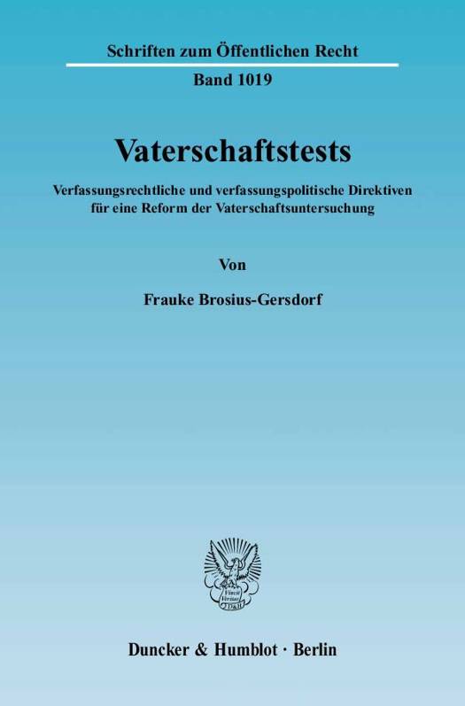 Frauke Brosius-Gersdorf widmet sich in ihrer Arbeit den einfachgesetzlichen und den verfassungsrechtlichen Rahmenbedingungen, unter denen der juristische Vater eines Kindes berechtigt ist, seine leibliche Vaterschaft untersuchen zu lassen. Sie zeigt, dass der rechtliche Kindesvater unter bestimmten Voraussetzungen einen grundrechtlich verbürgten Anspruch hat festzustellen, ob zu "seinem" Kind eine biologisch-genetische Beziehung besteht.