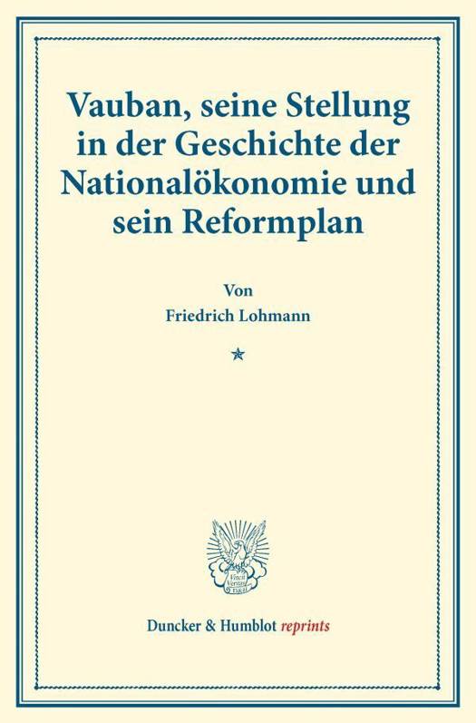 Vauban, Seine Stellung in Der Geschichte Der Nationalokonomie Und Sein Reformplan