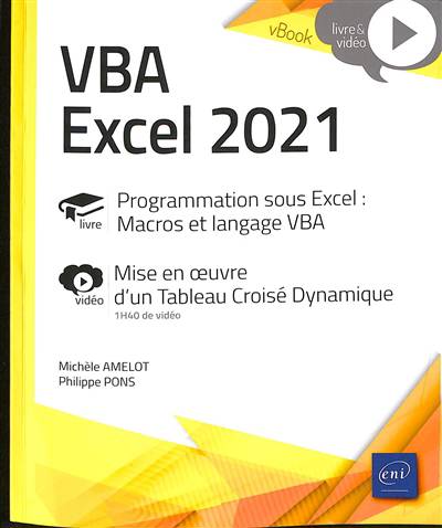 Ce livre de la collection vBook se compose d'un livre de référence sur VBA Excel 2021 pour programmer sous Excel avec les macros et le langage VBA et d’un approfondissement sous forme de vidéo sur la programmation d’une application Excel mettant en œuvre un Tableau Croisé Dynamique.