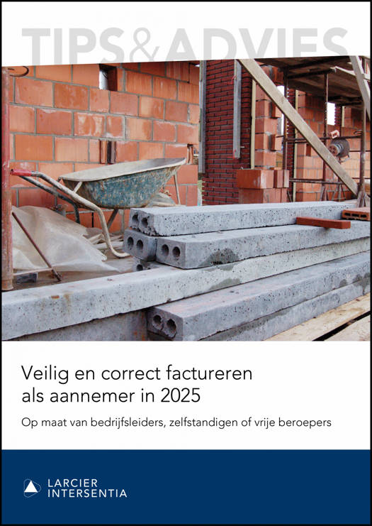 Dit Tips & Advies-Boek geeft u als aannemer een antwoord op al uw facturatievragen. We wijzen u specifiek op aangepaste en nieuwe regels. Aan de hand van 15 thema's bieden we u oplossingen voor al uw facturatiemiserie:
