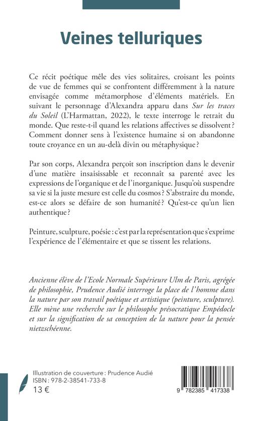 Ce récit poétique mêle des vies solitaires, croisant les points de vue de femmes qui se confrontent différemment à la nature envisagée comme métamorphose d’éléments matériels. En suivant le personnage d’Alexandra apparu dans Sur les traces du Soleil (L’Harmattan, 2022), le texte interroge le retrait du monde. Que reste-t-il quand les relations affectives se dissolvent ? Comment donner sens à l’existence humaine si on abandonne toute croyance en un au-delà divin ou métaphysique ? Par son corps, Alexandra perçoit son inscription dans le devenir d’une matière insaisissable et reconnaît sa parenté avec les expressions de l’organique et de l’inorganique. Jusqu’où suspendre sa vie si la juste mesure est celle du cosmos ? S’abstraire du monde, est-ce alors se défaire de son humanité ? Qu’est-ce qu’un lien authentique ? Peinture, sculpture, poésie : c’est par la représentation que s’exprime l’expérience de l’élémentaire et que se tissent les relations.