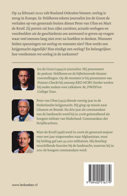 Jos de Groot geeft samen met Mart de Kruif en Peter van Uhm antwoord op de vraag hoe oorlog werkt. Mart de Kruif en Peter van Uhm putten hiervoor uit hun rijke persoonlijke verhalen, de recente ontwikkelingen en de geschiedenis. Welke voorwaarden zijn noodzakelijk voor het ontstaan van een oorlog en wanneer leiden spanningen niet tot oorlog? Welke vaste patronen zie je in het verloop? En hoe eindigt een oorlog? Wat is een krijgsmacht? Hoe werkt de hiërarchie en het leiderschap in het leger? Welke nazorg is nodig na het sluiten van de vrede?
