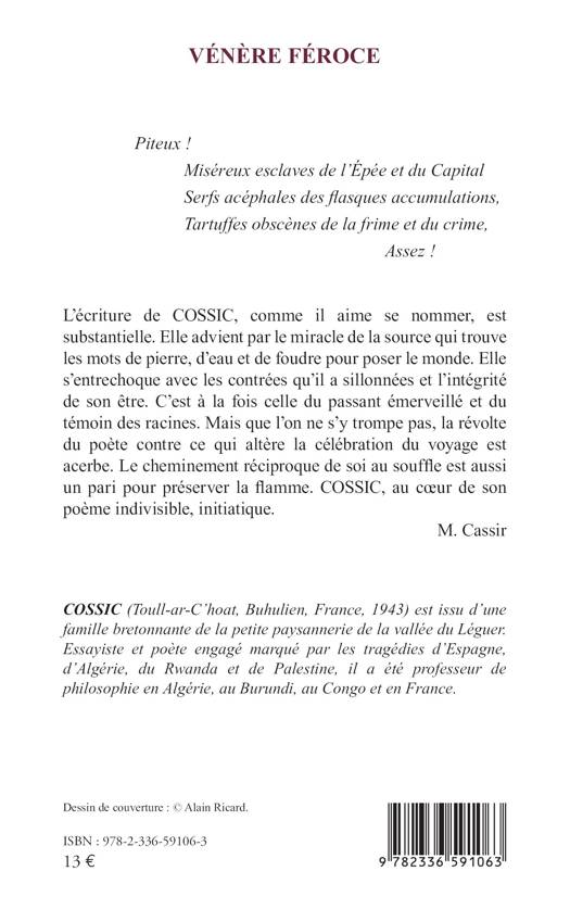 Assez ! L'écriture de COSSIC, comme il aime se nommer, est substantielle. Elle advient par le miracle de la source qui trouve les mots de pierre, d'eau et de foudre pour poser le monde. Elle s'entrechoque avec les contrées qu'il a sillonnées et l'intégrité de son être. C'est à la fois celle du passant émerveillé et du témoin des racines. Mais que l'on ne s'y trompe pas, la révolte du poète contre ce qui altère la célébration du voyage est acerbe. Le cheminement réciproque de soi au souffle est aussi un pari pour préserver la flamme. COSSIC, au coeur de son poème indivisible, initiatique.