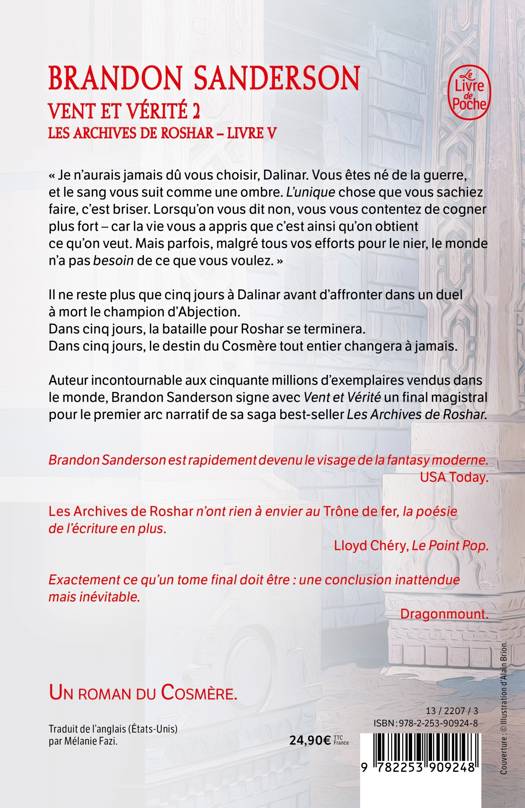 Auteur incontournable aux quarante-cinq millions de livres vendus dans le monde, Brandon Sanderson signe avec Vent et Vérité un final magistral pour le premier arc narratif de sa saga bestseller Les Archives de Roshar.