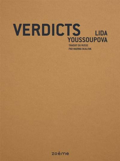 Verdicts est un livre de poésie composé à partir de jugements prononcés par des tribunaux russes entre 2012 et 2017, notamment dans des affaires de féminicides, d’infanticides ou de meurtres homophobes. Ces extraits judiciaires, d'une violence inouïe, constituent une chronique de la vie quotidienne des provinces périphériques russes, meurtries par la misère, l’alcoolisme ou l’arbitraire de l’État. Par un travail d’amplification performative, Verdicts montre que l’intime des corps des citoyens est l’un des premiers lieux où un régime autoritaire vient imprimer sa marque.