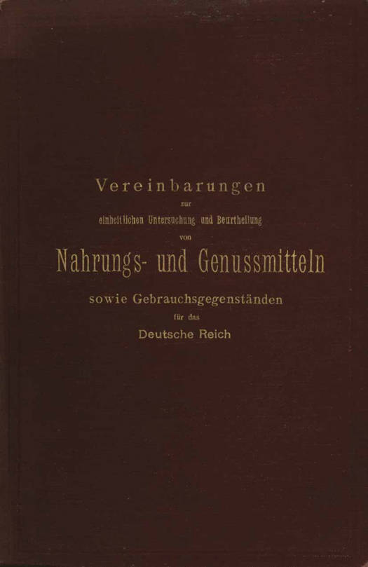 Vereinbarungen Zur Einheitlichen Untersuchung Und Beurtheilung Von Nahrungs- Und Genussmitteln Sowie Gebrauchsgegenständen Für Das Deutsche Reich
