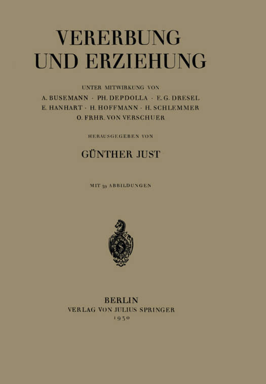 Dieser Buchtitel ist Teil des Digitalisierungsprojekts Springer Book Archives mit Publikationen, die seit den Anfängen des Verlags von 1842 erschienen sind. Der Verlag stellt mit diesem Archiv Quellen für die historische wie auch die disziplingeschichtliche Forschung zur Verfügung, die jeweils im historischen Kontext betrachtet werden müssen. Dieser Titel erschien in der Zeit vor 1945 und wird daher in seiner zeittypischen politisch-ideologischen Ausrichtung vom Verlag nicht beworben.