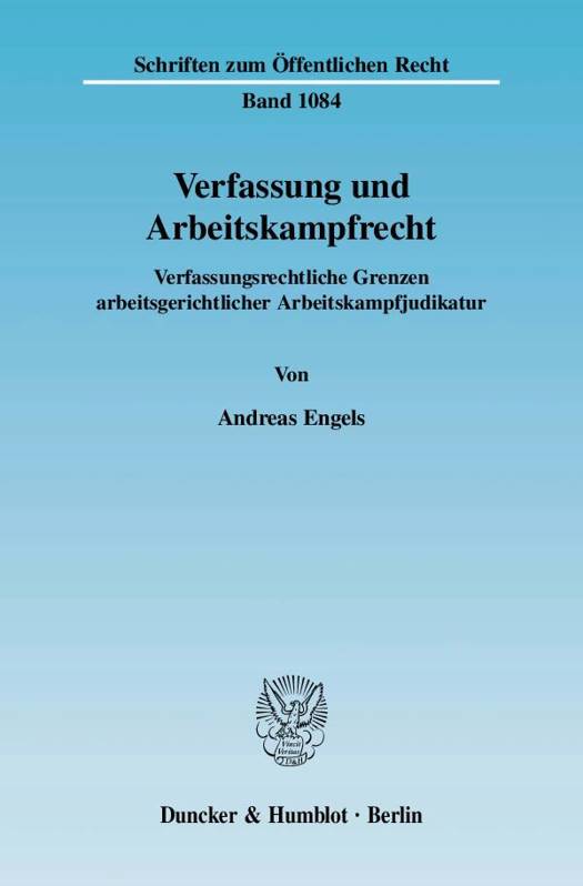 Andreas Engels unterzieht die Rechtsprechung des Bundesarbeitsgerichts daher einer kritischen verfassungsdogmatischen Analyse. Dabei wird die konkrete inhaltliche Reichweite der verfassungsrechtlichen Arbeitskampffreiheit bestimmt und im System grundrechtsdogmatischer Elementarkategorien verortet. Überdies werden die verfassungsrechtlichen Grundlagen und Grenzen des Arbeitskampfrichterrechts im Spannungsfeld zwischen Gewaltenteilung und Wesentlichkeitstheorie aufgezeigt.