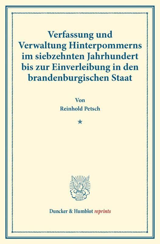 Verfassung Und Verwaltung Hinterpommerns Im Siebzehnten Jahrhundert Bis Zur Einverleibung in Den Brandenburgischen Staat