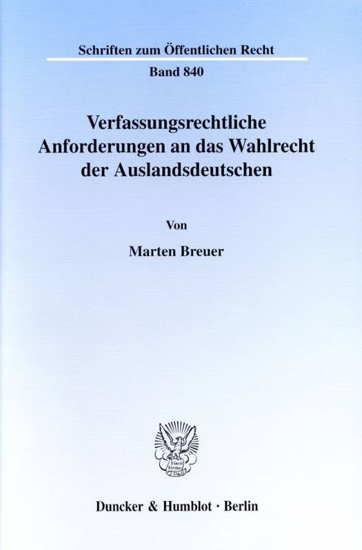 Daneben werden die Argumente für einen Ausschluß der Auslandsdeutschen von den Wahlen überprüft, wobei die Verbürgungen von EMRK und IPBPR ebenso in die Überlegung mit einbezogen werden wie die Verfassungs- und Wahlrechtsentwicklung in 18 Europaratstaaten. Der Verfasser kommt zu dem Ergebnis, daß ein vollständiger Ausschluß der Auslandsdeutschen von den Bundestagswahlen heute verfassungsrechtlich nicht mehr zu rechtfertigen ist. Im Hinblick auf die einfachgesetzliche Regelung in 12 II BWahlG sieht er bei der Mehrzahl der Tatbestände die Grenze des verfassungsrechtlich Zulässigen überschritten und erarbeitet auf der Grundlage seiner rechtsvergleichenden Untersuchung Vorschläge de lege ferenda.