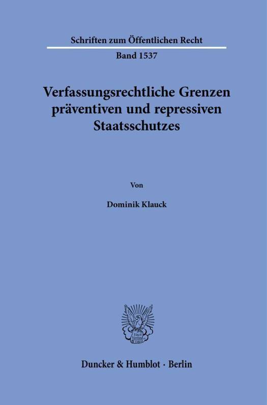 English summary: Constitutional limitations for the guarantee of state security Modern challenges for an effective protection of the fundamental rights increasingly arise not only from single serious impairments of the protected rights, but also from a continuous expan-sion of state powers. The thesis examines constitutional standards that can be applied to provide against an increasing narrowing of constitutionally guaranteed freedoms, in the sense of a comprehensive scrutiny. German description: Moderne Herausforderungen fur eine effektive Gewahrleistung des Grundrechtsschutzes ergeben sich zunehmend nicht mehr nur aus einzelnen besonders schwerwiegenden Grundrechtseingriffen, sondern aus einer kontinuierlichen Erweiterung staatlicher Befugnisse und kumulativen Belastungen.Dominik Klauck versucht in der vorliegenden Publikation, Massstabe aufzuzeigen, die den Zuwachs an Staatsmacht effektiv begrenzen konnen. Als Problemkreise werden das unzureichend reflektierte Zusammenspiel zwischen der Einschatzungsprarogative des Gesetzgebers im Strafrecht und der gerichtlichen Kontrolldichte im Sicherheits- und Strafprozessrecht, die fortschreitende Nivellierung der Grenzen zwischen Pravention und Repression, die Zentralisierung von Zustandigkeiten bei den Sicherheits- und Justizbehorden, die jedenfalls nicht praxistaugliche dogmatische Erfassung kumulativer Belastungen sowie die zusatzliche Verengung verfassungsrechtlich garantierter Freiheitsraume durch die Kooperation der Bundesrepublik Deutschland mit auslandischen Staaten diskutiert.