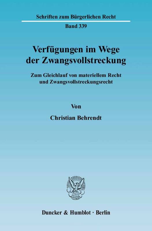 Christian Behrendt untersucht in seiner Arbeit das Verhältnis von rechtsgeschäftlichen Verfügungen zu Zwangsverfügungen. Die in einigen Gesetzesbestimmungen enthaltene Gleichstellung dieser Verfügungen ist Ausdruck eines allgemeinen Grundsatzes: Zwangsverfügungen und rechtsgeschäftliche Verfügungen sind gleich. Sie unterscheiden sich allein dadurch, daß bei Zwangsverfügungen der Tatbestand der Einigung der Parteien durch zwangsweise Vornahme gegen den Schuldner ersetzt wird; im übrigen sind Voraussetzungen und Wirkungen grundsätzlich gleich. Der Grundsatz des Gleichlaufs ist aus zwei Gründen erforderlich: