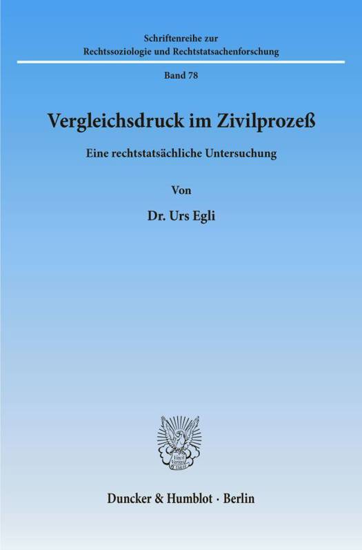 Der Autor untersucht mit rechtssoziologischen Methoden, ob in Zivilprozessen von den Gerichten Druck auf die Rechtsuchenden ausgeübt wird, einen Prozeßvergleich abzuschließen. Nach einer Darstellung des sozialwissenschaftlichen Hintergrunds, einer Analyse der Interessen der Prozeßbeteiligten und der Auswertung der Rechtspflegestatistiken stellt der Autor die Resultate einer eigenen Untersuchung dar, welche er im Jahre 1994 in der Schweiz im Kanton Zürich durchgeführt hat. Er gelangt dabei zum Schluß, daß es nicht in erster Linie das richterliche Verhalten, sondern daß es die institutionellen Druckfaktoren wie Kosten, Verfahrensdauer und vor allem die aus der richterlichen Doppelrolle von Richter und Vermittler resultierende Urteilsdrohung sind, welche Vergleichsdruck erzeugen.