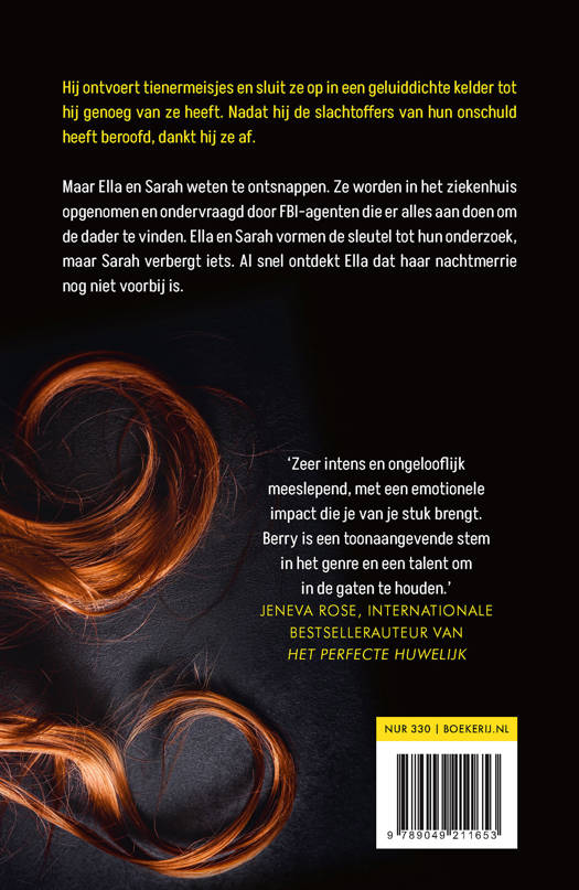 Ella riskeert alles om zichzelf en de andere meisjes te bevrijden. Maar alleen Sarah – het meisje dat het langst gevangenzit – weet samen met haar te ontkomen. Ze worden in het ziekenhuis opgenomen en ondervraagd door FBI-agenten die er alles aan doen om de verantwoordelijke man te vinden. Ella en Sarah vormen de sleutel tot hun onderzoek, maar Sarah verbergt iets. Al snel ontdekt Ella dat haar nachtmerrie nog niet voorbij is.