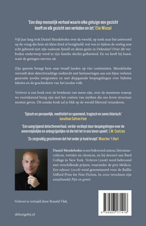 Vijf jaar lang trok Daniel Mendelsohn over de wereld, op zoek naar het antwoord op de vraag die hem als klein kind al bezighield: wat was er nou echt gebeurd met zijn oudoom Sjmiël en diens gezin in Oekraïne tijdens de oorlog? Over dit verboden onderwerp werd in zijn familie slechts gefluisterd. En nu heeft hij haast, want de getuigen sterven uit.