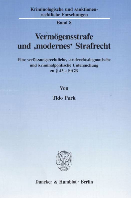 In der Untersuchung von Park werden die Bedenken gegen die Vermögensstrafe eingehend beleuchtet. In der Analyse gelangt der Autor zu dem Ergebnis, daß die Vermögensstrafe gegen verschiedene Verfassungsbestimmungen verstößt. Die vom BGH vorgeschlagene Interpretation des 43 a StGB wird nach eingehender Erörterung verworfen.