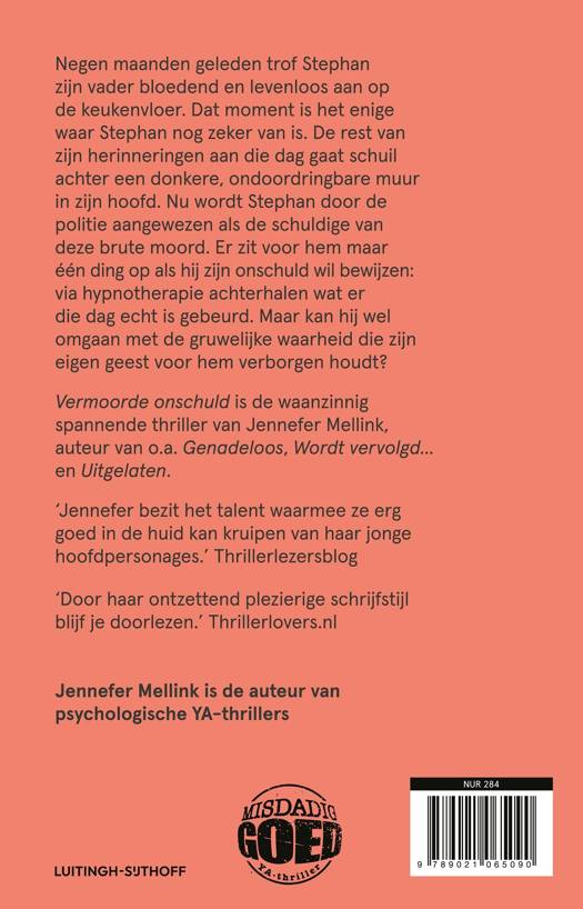 Jennefer Mellink schreef met Vermoorde onschuld een YA-thriller die alles in zich heeft: intrigerende personages, een spanning die gestaag wordt opgebouwd, en – zoals we van Jennefer mogen verwachten – een verbluffende ontknoping!