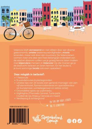 Deze reisgids is inclusief: - 1 fietsroute - 9 wandelroutes & plattegronden - Unieke tips van 24 locals (van general manager van een vijf sterrenhotel, flamencodanseres en operadirecteur tot kunstenaar, winkeleigenaar en tattoo artist) - Onontdekte spots op wijkniveau - Highlights (Mercado Central, Turia park, Ciudad de las Artes y Ciencias en meer) - Verdieping & achtergrond