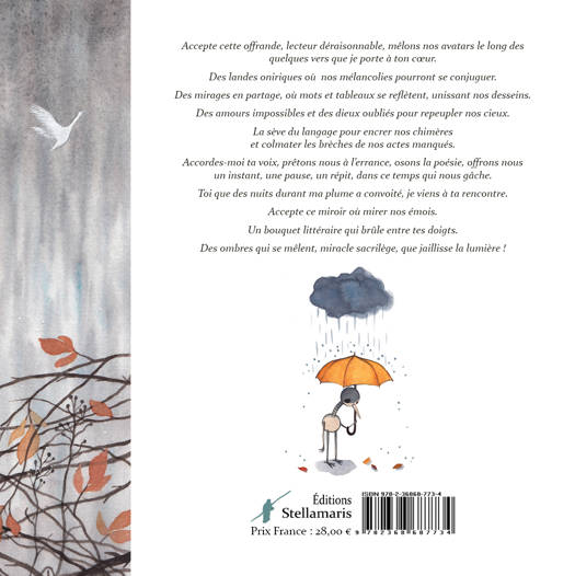 Accepte cette offrande, lecteur déraisonnable, mêlons nos avatars le long des quelques vers que je porte à ton cœur. Des landes oniriques où nos mélancolies pourront se conjuguer. Des mirages en partage, où mots et tableaux se reflètent, unissant nos desseins. Des amours impossibles et des dieux oubliés pour repeupler nos cieux. La sève du langage pour encrer nos chimères et colmater les brèches de nos actes manqués. Accordes-moi ta voix, prêtons nous à l’errance, osons la poésie, offrons nous un instant, une pause, un répit, dans ce temps qui nous gâche. Toi que des nuits durant ma plume a convoité, je viens à ta rencontre. Accepte ce miroir où mirer nos émois. Un bouquet littéraire qui brûle entre tes doigts. Des ombres qui se mêlent, miracle sacrilège, que jaillisse la lumière !