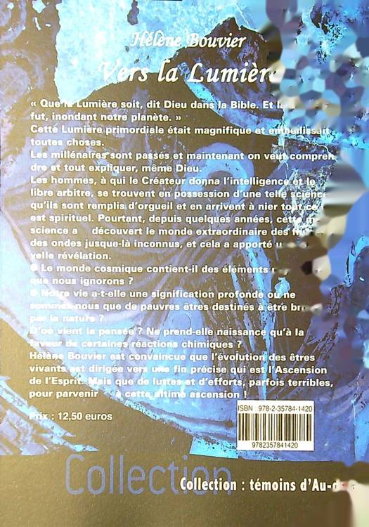 « Que la Lumière soit, dit Dieu dans la Bible, Et la Lumière fut, inondant notre planète. » Cette Lumière primordiale était magnifique et embellissait toutes choses. Les millénaires sont passés et maintenant on veut comprendre et tout expliquer, même Dieu. Les hommes, à qui le Créateur donna l'intelligence et le libre arbitre, se trouvent en possession d'une telle science qu'ils sont remplis d'orgueil et en arrivent à nier tout ce qui est spirituel. Pourtant, depuis quelques années, cette même science a découvert le monde extraordinaire des fluides et des ondes jusque-là inconnus, et cela a apporté une nouvelle révélation. Le monde cosmique contient-il des éléments psychiques que nous ignorons ? Notre vie a-t-elle une signification profonde ou ne sommes-nous que de pauvres êtres destinés à être broyés par la nature ? Notre cerveau contient plus de douze milliards de cellules nerveuses, unies entre elles plusieurs trillions de fois par de délicates fibrilles. De cette infime quantité de matière vivante s'échappe la force immense de la pensée, cette pensée qui englobe l'univers matériel et l'univers invisible à nos yeux charnels. D'où vient cette pensée ? Ne prend-elle naissance que quand certaines réactions chimiques se produisent ? Hélène Bouvier est convaincue que l'évolution des êtres vivants est dirigée vers une fin précise qui est l'Ascension de l'Esprit. Mais que de luttes et d'efforts, parfois terribles, pour parvenir à cette ultime ascension !