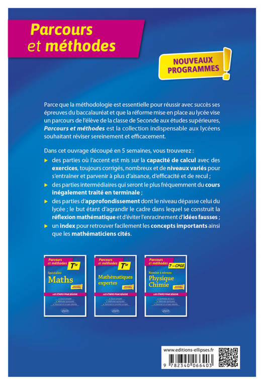 Cet ouvrage conçu autour de 5 semaines de travail propose aux futurs étudiants de prépa de réviser pendant les vacances leurs connaissances en mathématiques pour aborder dans les meilleures conditions l'entrée en CPGE. Il se découpe en suivant la structure suivante :