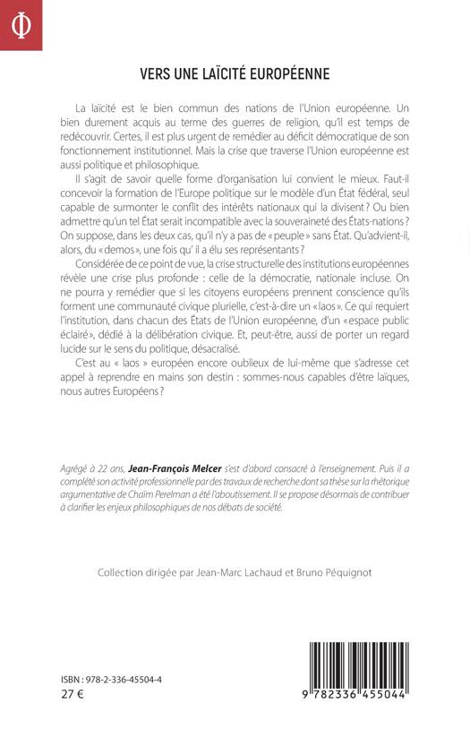 La laïcité est le bien commun des nations de l'Union européenne. Un bien durement acquis au terme des guerres de religion, qu'il est temps de redécouvrir. Certes, il est plus urgent de remédier au déficit démocratique de son fonctionnement institutionnel. Mais la crise que traverse l'Union européenne est aussi politique et philosophique. Il s'agit de savoir quelle forme d'organisation lui convient le mieux. Faut-il concevoir la formation de l'Europe politique sur le modèle d'un État fédéral ? Ou bien admettre qu'un tel État serait incompatible avec la souveraineté des États-nations ? On suppose, dans les deux cas, qu'il n'y a pas de peuple sans État. Qu'advient-il, alors, du demos, quand il a élu ses représentants ? Considérée de ce point de vue, la crise structurelle des institutions européennes révèle une crise plus profonde celle de la démocratie, nationale incluse. On ne pourra y remédier que si les citoyens européens prennent conscience qu'ils forment une communauté civique plurielle, c'est-à-dire un laos . Ce qui requiert l'institution d'un espace public éclairé dédié à la délibération civique. Et, peut-être, aussi de porter un regard lucide sur le sens du politique, désacralisé. C'est au laos européen encore oublieux de lui-même que s'adresse cet appel à reprendre en mains son destin sommes-nous capables d'être laïques, nous autres Européens ?
